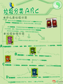 中国生活垃圾一般可分为四大类:可回收垃圾、厨余垃圾、有害垃圾和其他垃圾。